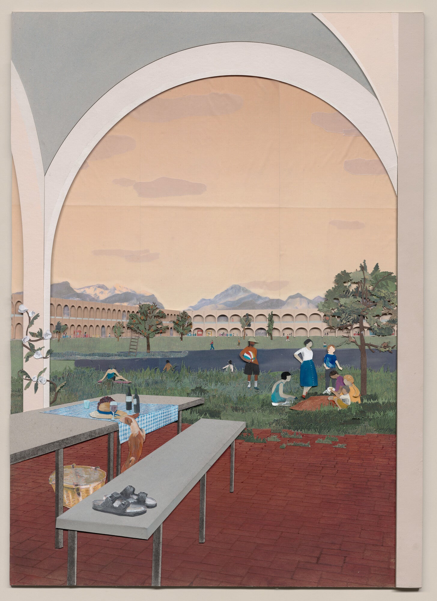 Illustration tirée d’une série de huit scènes urbaines créées pour l’exposition du CCA "Nos jours heureux : Architecture et bien-être à l’ère du capitalisme émotionnel" (8 mai-13 octobre 2019). Collection du Centre Canadien d'Architecture, Montréal; Commande du CCA © Bovenbouw Architectuur and Gosia Olchowska