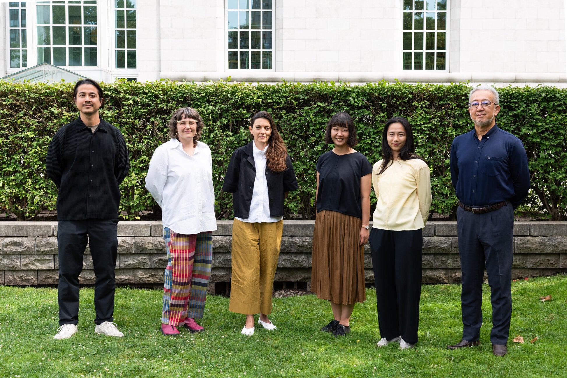 Chercheurs boursiers CCA-WRI 2024 et représentants du Window Research Institute (WRI), de gauche à droite: Yosuke Nakamoto (boursier), Emily Doucet (boursière), Gökçe Günel (boursière), Akiko Tsukamoto (administrateur principal de recherche, WRI), Marie Sasago (chargée de programme, WRI), Tadashi Ushimaru (directeur, WRI). Photographe : Matthieu Gagnon © CCA